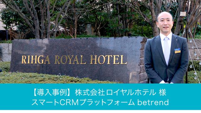 スマートCRMプラットフォーム『betrend』をご利用いただいている、リーガロイヤルホテル(株式会社ロイヤルホテル)様の導入事例を更新しました。 大阪・京都・東京などで、感動と満足を追求したサービスで多くの支持を受けているリーガロイヤルホテル様では、お客様との継続的なコミュニケーションツールとして、『betrend』を利用されています。 ぜひ、ご覧ください。 【導入事例】株式会社ロイヤルホテル 様 http://www.betrend...