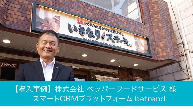 www.betrend.comスマートCRMプラットフォーム『betrend』をご利用いただいている、株式会社ペッパーフードサービス様の導入事例を更新しました。 立ち食いスタイルでステーキを提供する人気店『いきなり!ステーキ』を運営されている株式会社ペッパーフードサービス様は、『betrend』をご活用いただくことで、食べたステーキの量に応じてマイルが貯まる『肉マイレージカード』を中心としたスマートCRMを実施されています。 ぜひ、ご覧ください。 【導入事例】株式会...