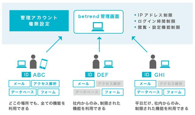 www.betrend.comスマートCRMプラットフォーム『betrend』を提供するビートレンド株式会社(本社:東京都港区、代表取締役社長:井上英昭、以下 ビートレンド)は、12月21日(月)に『betrend 権限管理』オプションをリリースしました。『betrend』の子アカウントを複数発行することで、担当者単位で操作ログを残すことができ、子アカウント単位で操作・閲覧できる機能を制限することもできるオプションサービスとなっています。 『betrend 権限管理...